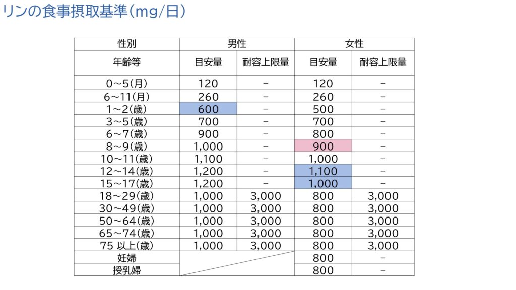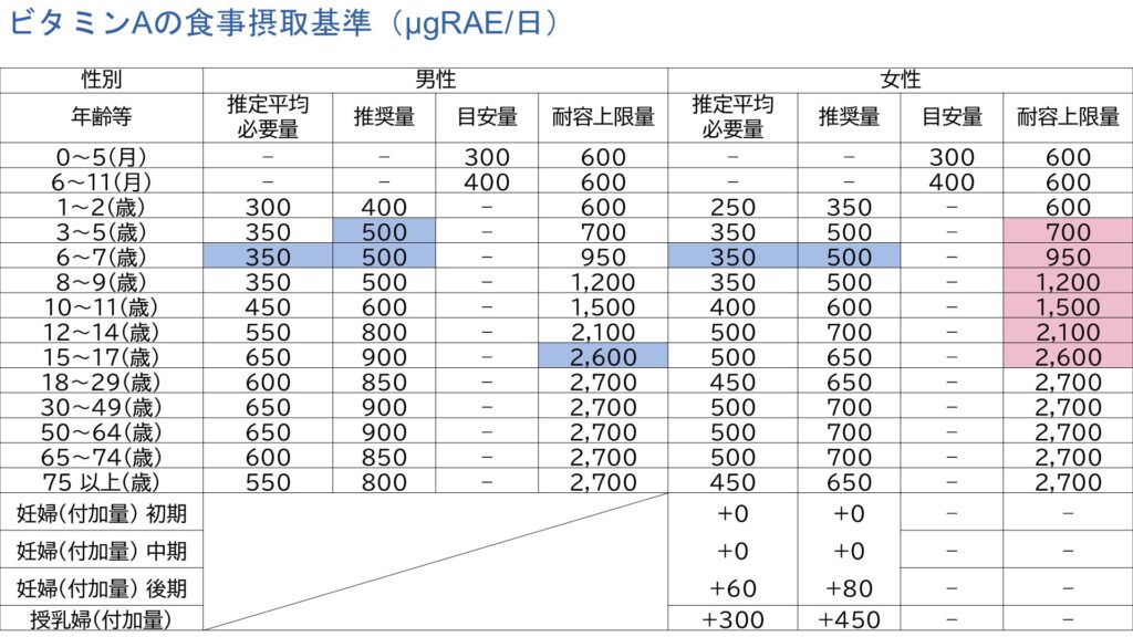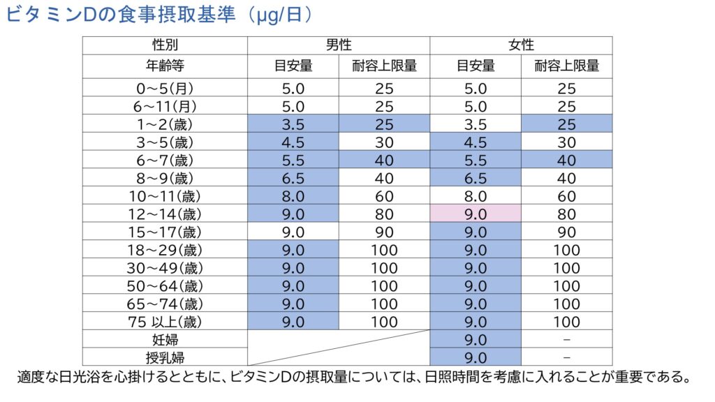 | 授乳婦(付加量) | +2.5 | +3.5 | – | – | ||||