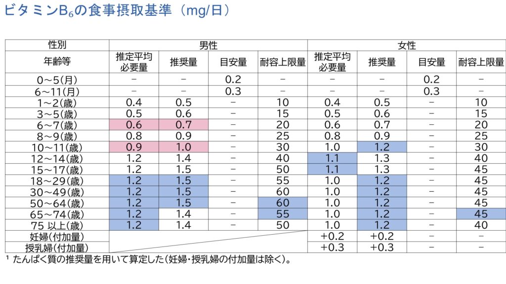 | 授乳婦(付加量) | +0.5 | +0.6 | – | – | ||||