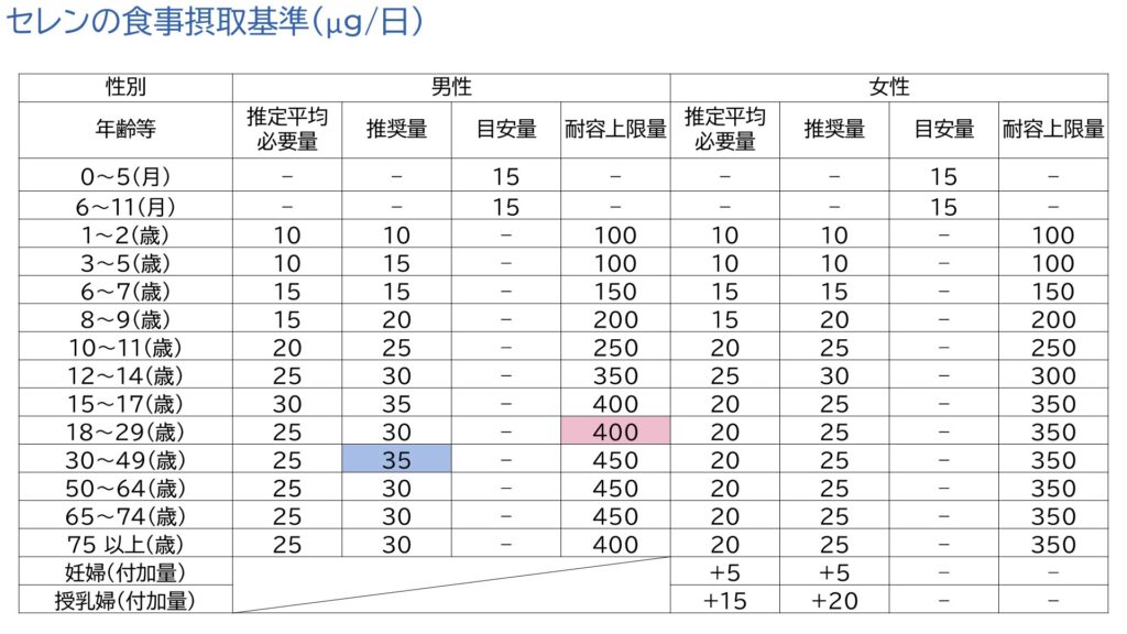 | 30〜49(歳) | 25 | 35 | – | 450 | 20 | 25 | – | 350 |